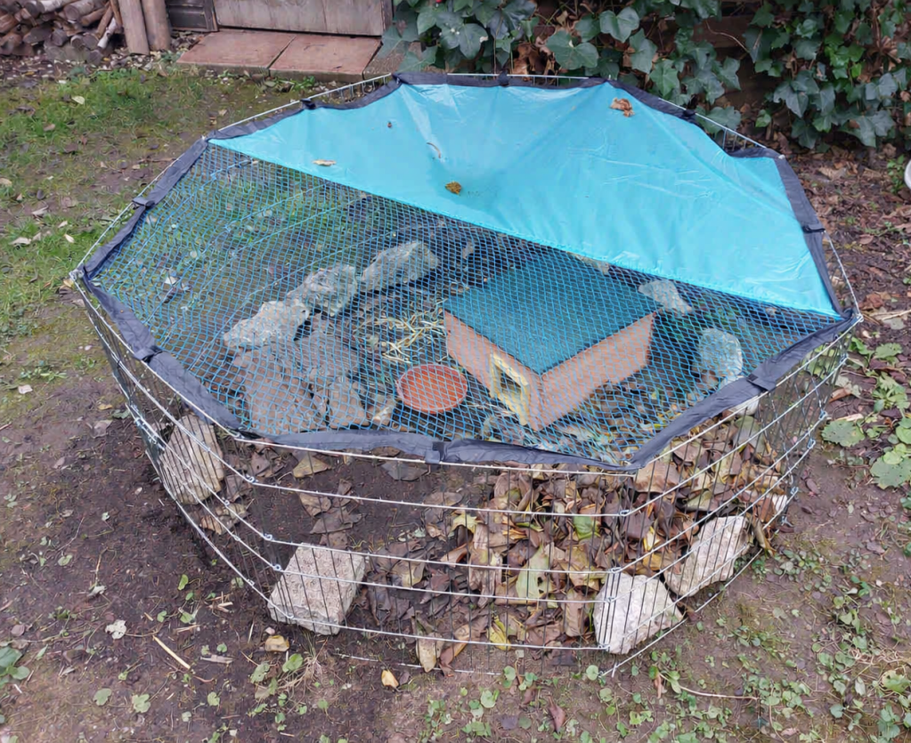 - Das Auswilderungsgehege sollte eher wettergeschützt aufgestellt werden, zum Beispiel an der Hauswand oder in einer Ecke. Alternativ kann man das Gehege auch zum Teil mit einem Brett abdecken.